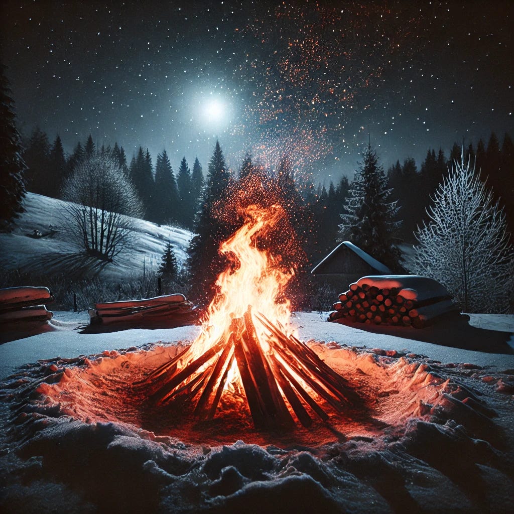 MORE SPECIFICALLY: A BONFIRE IN A COLD DARK WINTER NIGHT